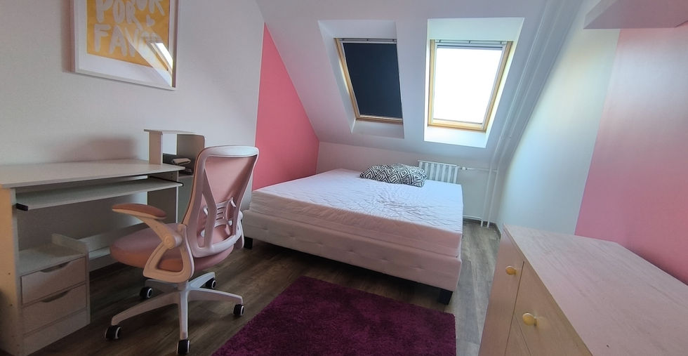 Welcome to the ultimate pink paradise! This room is so bright and cool, it might just need its own pair of sunglasses. Up on the second floor of a super stylish modern apartment, you'll find a cozy double bed for your beauty sleep, a study desk for when you're pretending to work, and a wardrobe roomy enough to stash all your fashion secrets.